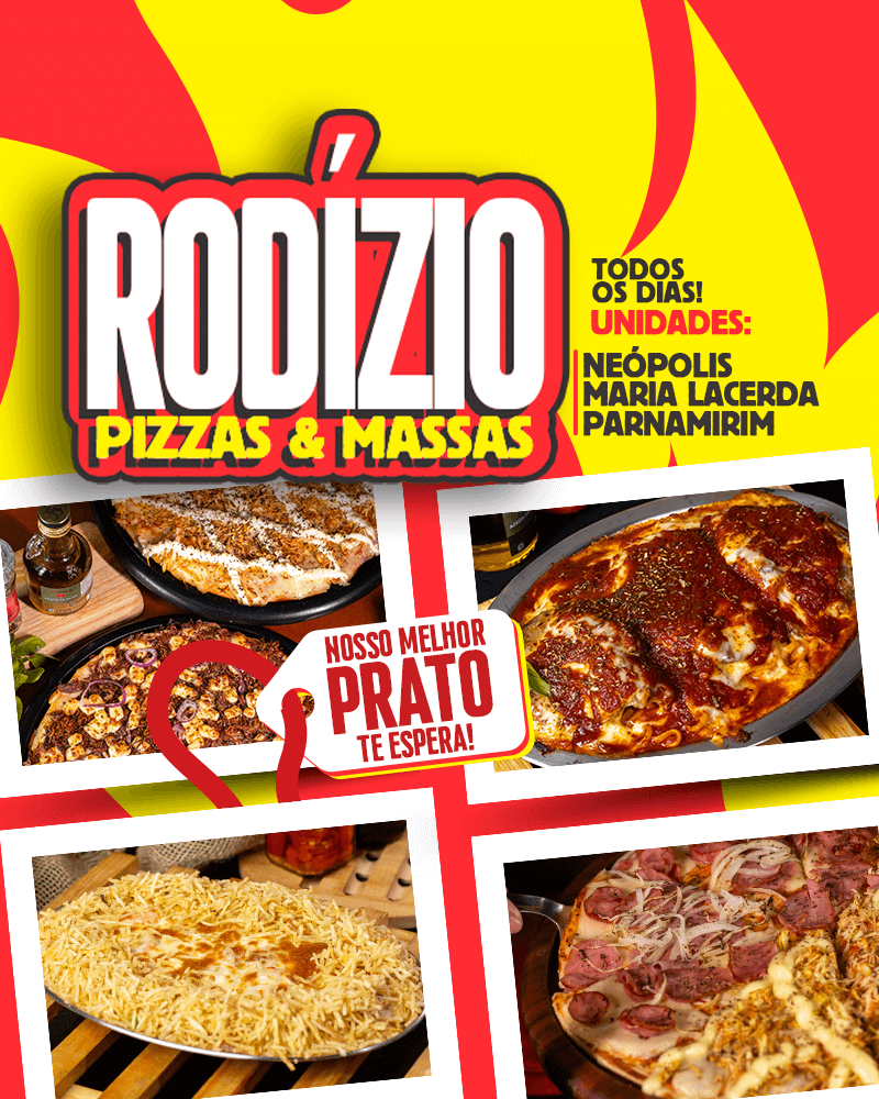 Em nossas unidades, você encontrará uma ampla variedade de pizzas, desde as clássicas até as mais criativas e exclusivas combinações de sabores. Mas não paramos por aí! Oferecemos também um irresistível rodízio, onde você pode saborear uma diversidade de pizzas até se sentir totalmente satisfeito.